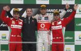1 Jenson Button (McLaren-Mercedes) 1h 45m 22.656s2 Fernando Alonso (Ferrari) +2.754s3 Felipe Massa (Ferrari) +3.615s4 Mark Webber (Red Bull-Renault) +4.936s5 Nico Hulkenberg (Force India-Mercedes) +5.708s6 Sebastian Vettel (Red Bull-Renault) +9.453s7 Michael Schumacher (Mercedes) +11.900s8 Jean-Eric Vergne (Toro Rosso-Ferrari) +28.600s9 Kamui Kobayashi (Sauber-Ferrari) +31.200s10 Kimi Raikkonen (Lotus-Renault) +1lap EtcFastest lap: Hamilton, 1:18.069