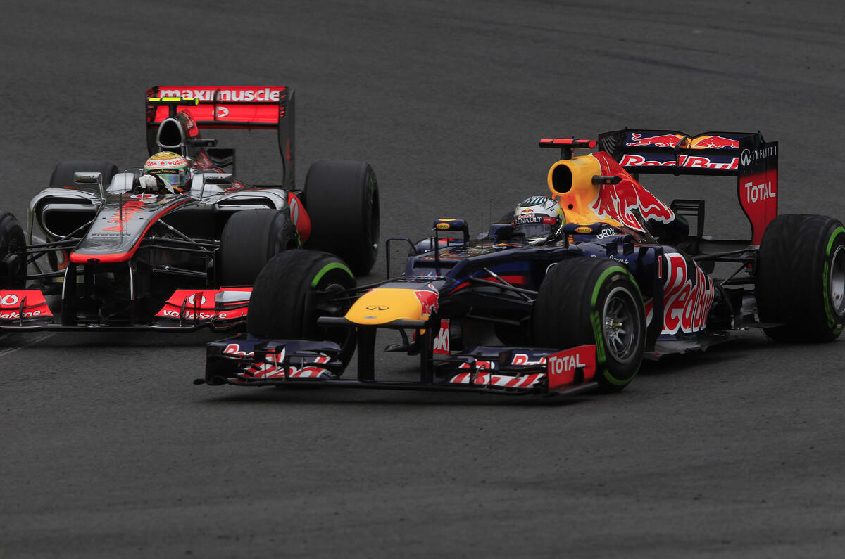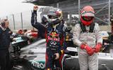 The race, which was run in the wet, damp and dry at various times, was full of drama, as Vettel recovered from a first-lap clash that dropped him to last position and climbed back through the field, while title rival Fernando Alonso (Ferrari) made the most of a fast start, great pace and the misfortune of others to finish second.