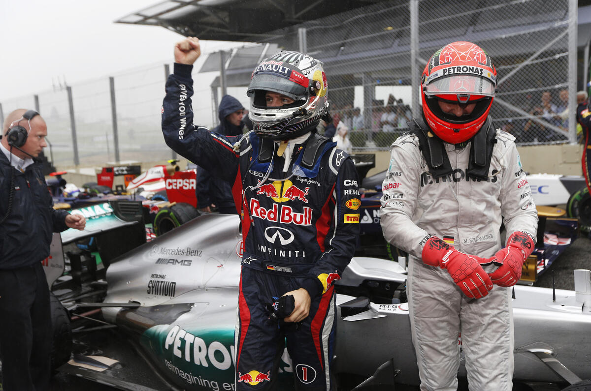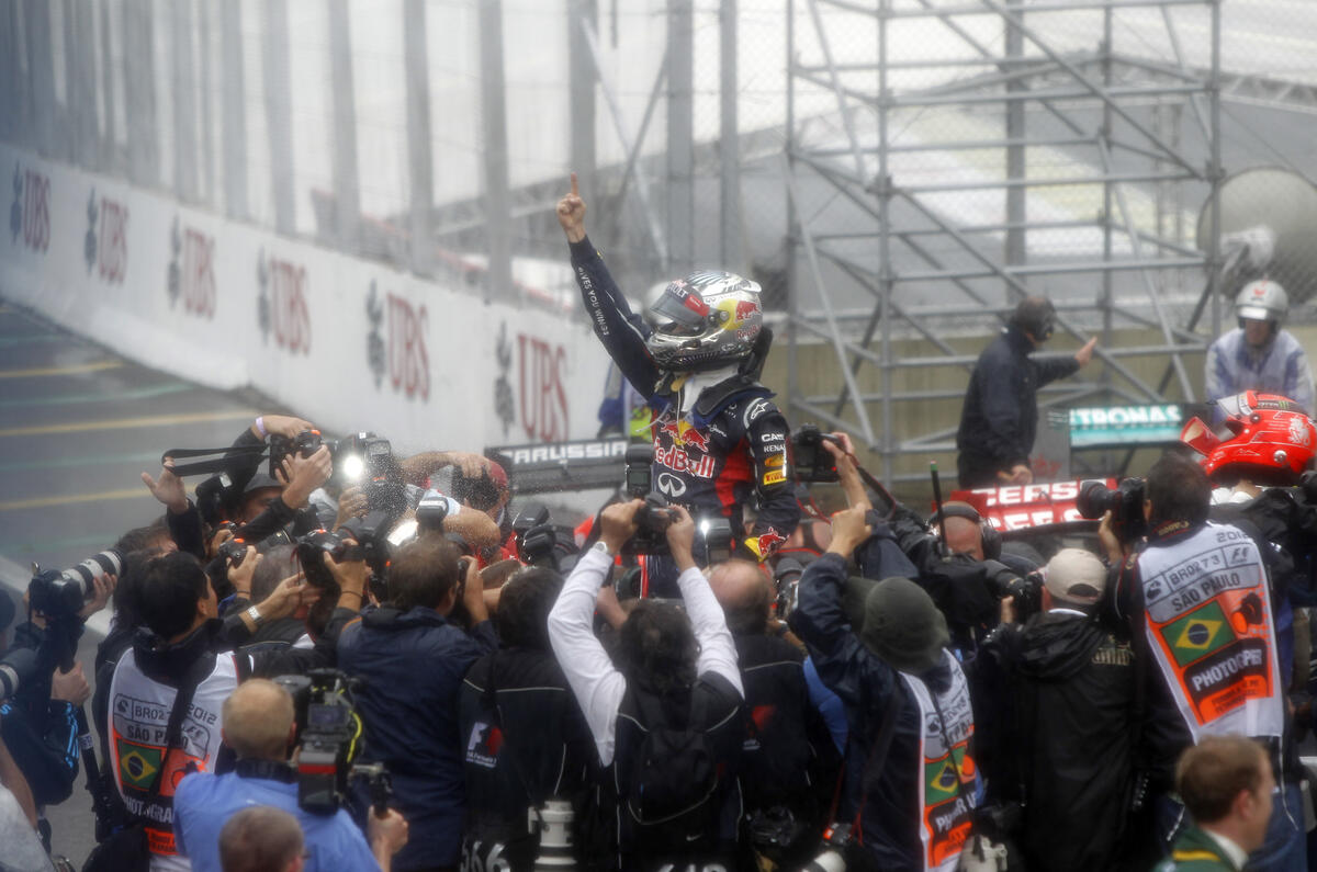 Heavy rain then threw in another curveball, with Vettel stopping early for tyres only to find his pit crew weren’t ready. However, he quickly climbed to sixth, which was enough to earn him the title from Alonso, who had tenaciously climbed up to second position, ahead of his rapid Ferrari team-mate, Felipe Massa.