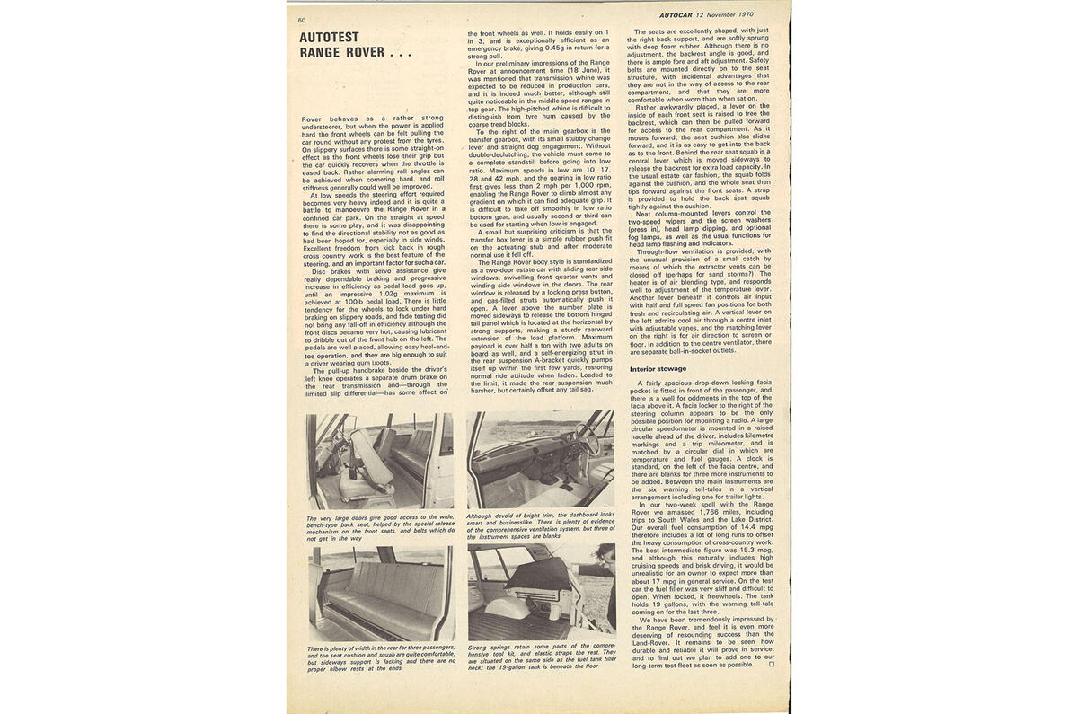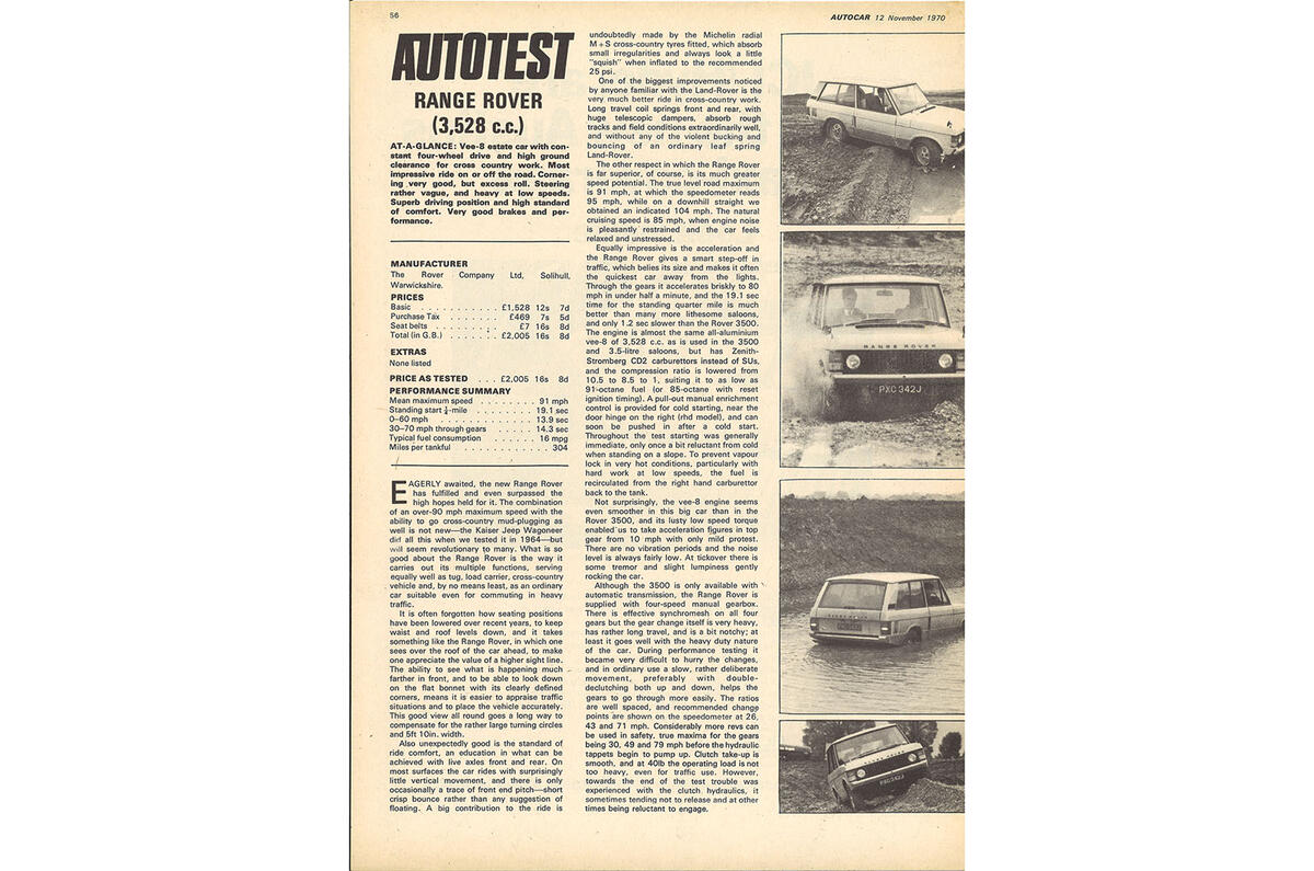 With the launch of the facelifted Range Rover, which promises a better mix of luxury and off-road capabilities than its predecessors, we thought it only right to republish an Autocar road test for the Mk1 original. The unmodified words from our 12 November 1970 issue follow...