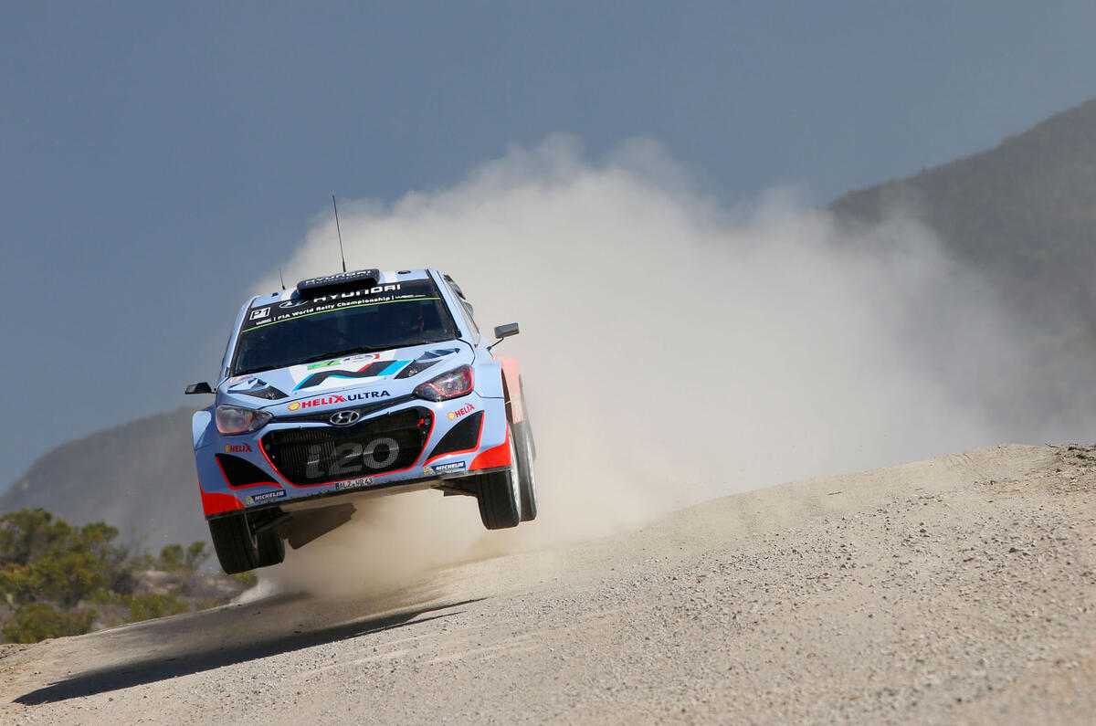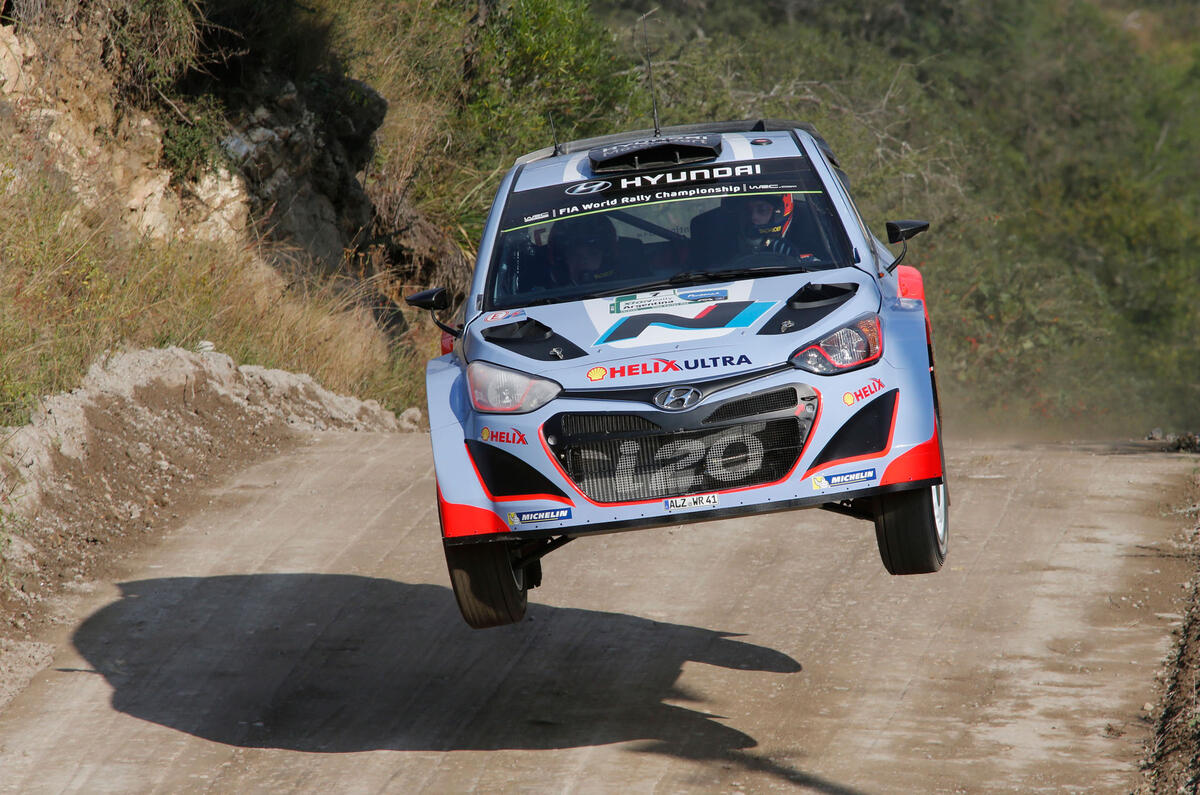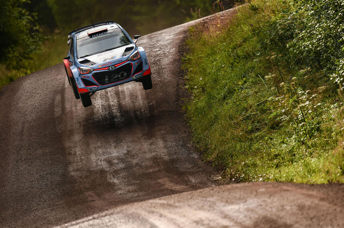 “As soon as you brake the car goes down on its dampers,” Neuville explains. “When you get up to the crest and release the brakes the car comes out of the dampers and the springs push the car up as you take off, so you get a really big jump.