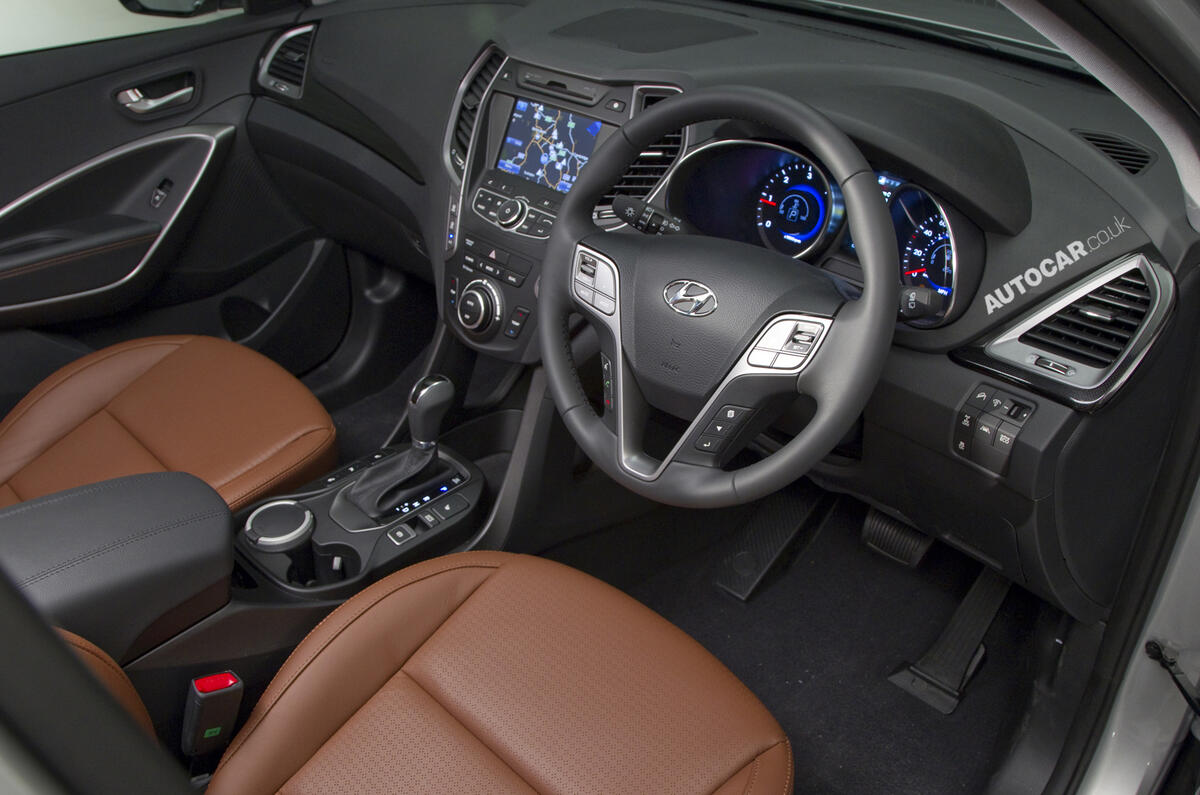 Hyundai says that the only carryover from the current Santa Fe is the 194bhp 2.2-litre diesel engine, which is the sole powertrain option. Its economy has been improved from 41.5mpg to 46.3mpg, and CO2 cut from 176g/km to 159g/km in the four-wheel-drive Santa Fe when fitted with a six-speed manual gearbox.