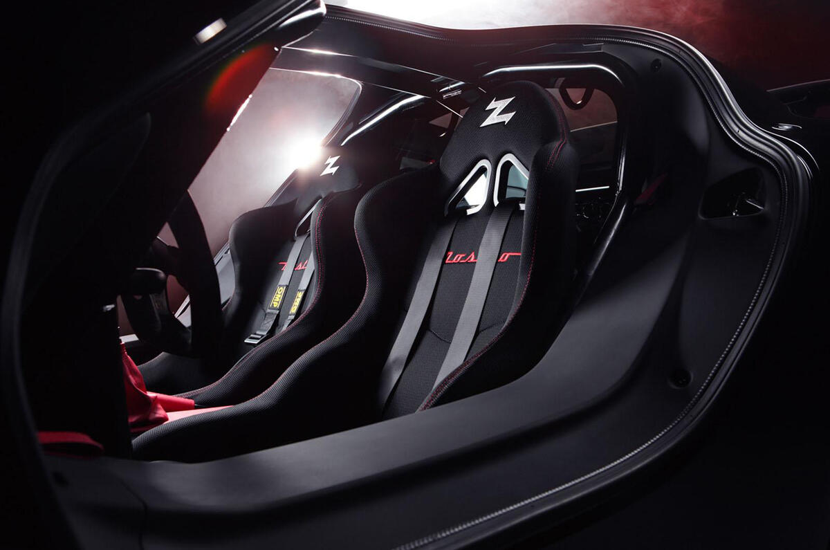 Described as being created “for pure racing mechanics”, the Mostro coupé features a Ferrari-Maserati 4.2-litre V8 engine under its bonnet and a carbonfibre monocell construction. The car’s bodywork is made entirely of carbonfibre.