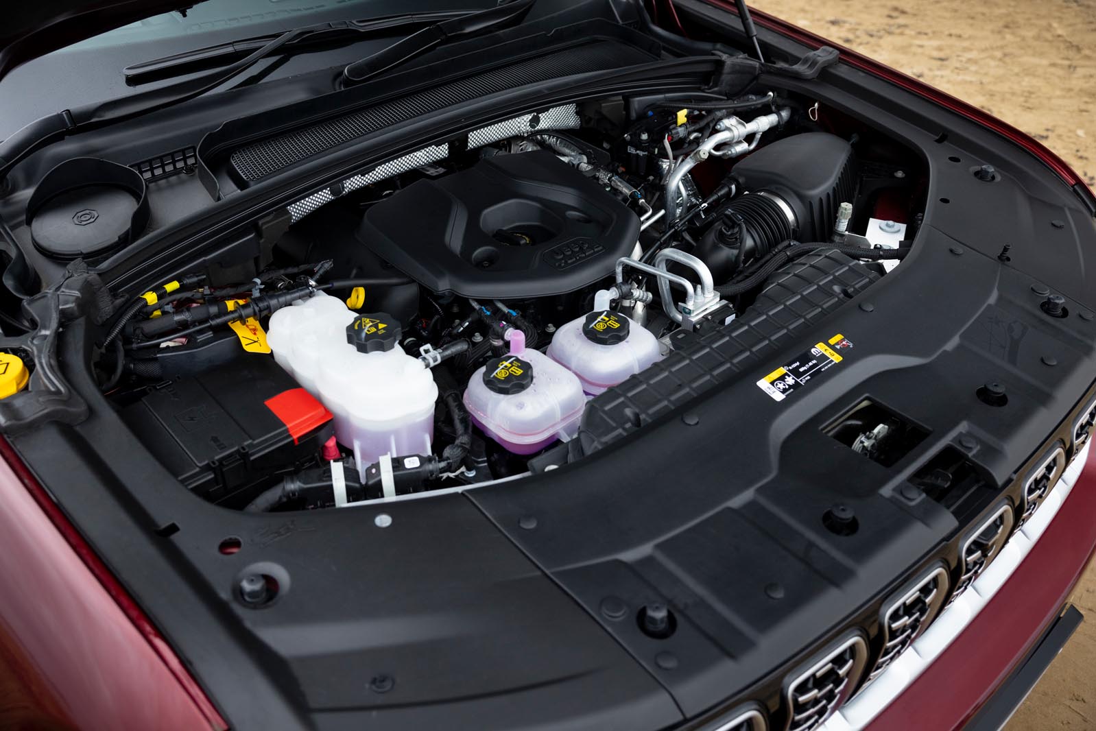 The plug-in hybrid powertrain in the Grand Cherokee consists of a 2.0-litre four-cylinder turbo petrol engine making 270bhp and 295lb ft, two electric motors and a 17.3kWh (15.0kWh usable) battery pack.