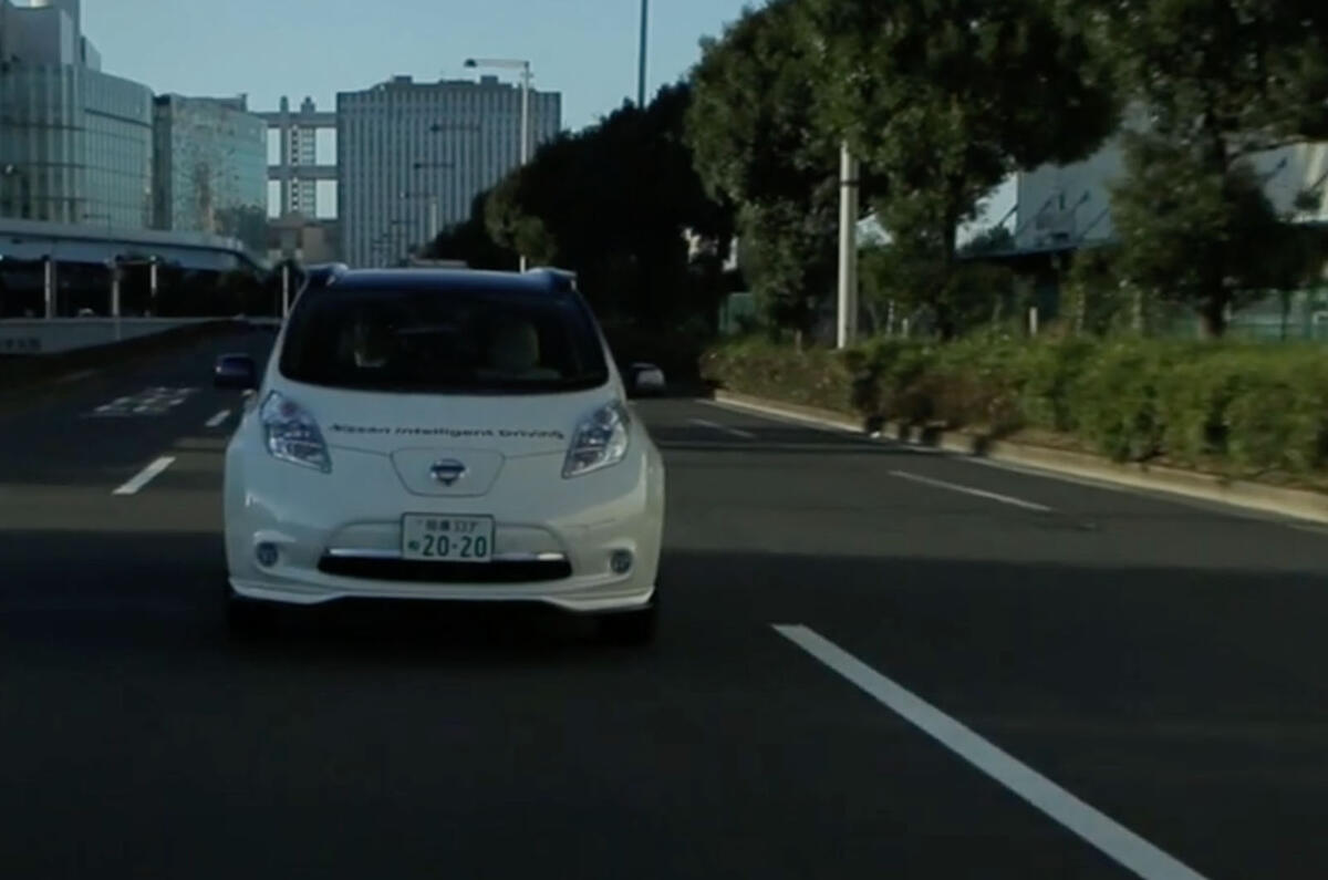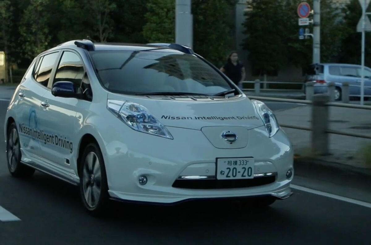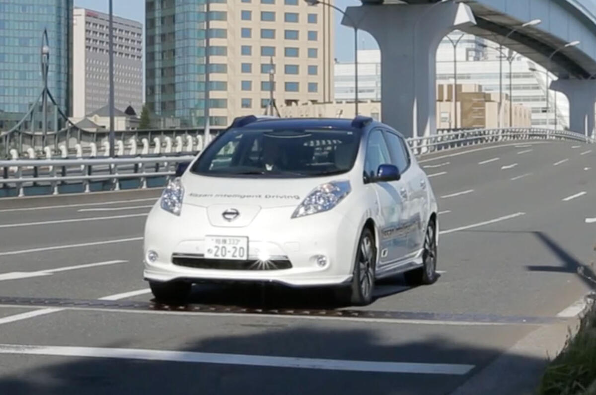 It may look like a perfectly ordinary Nissan Leaf, but it's far from that. This one can take you on any journey you plot on its navigation screen - through suburbs and traffic, over bridges and on motorways at speeds of up to 80mph - without requiring anyone to touch its wheel.