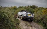 He presses the button to retract the roof. It’s drizzling, but it feels only right to get the full wind-in-the-hair experience. Indeed, looking at the state of the course, I wonder if this test will end up being mud-in-the-hair.